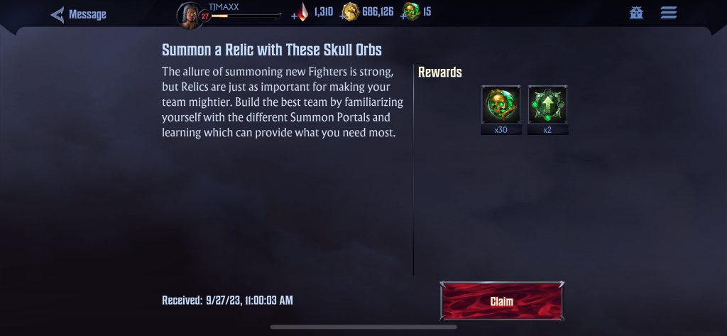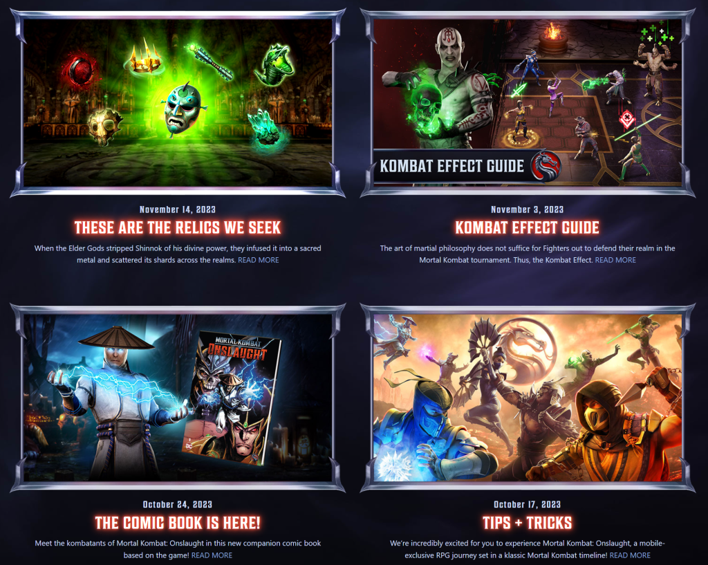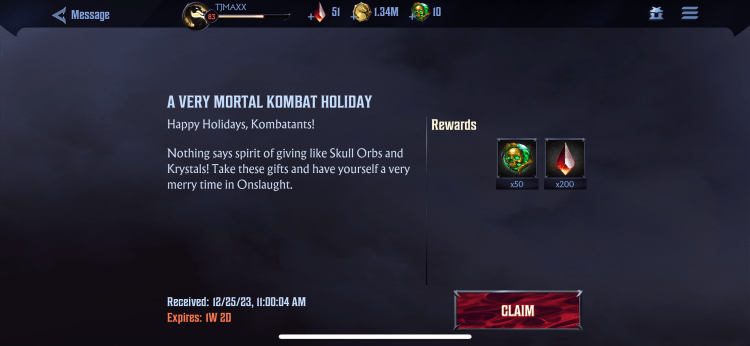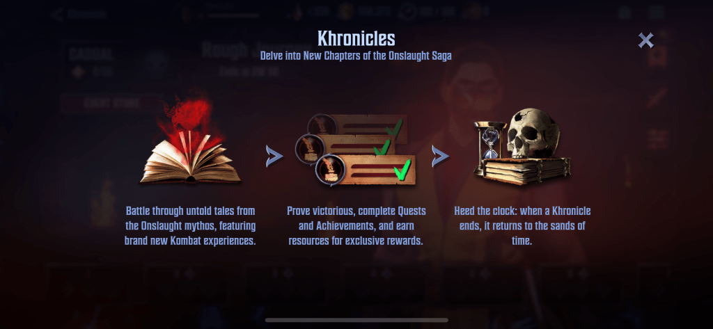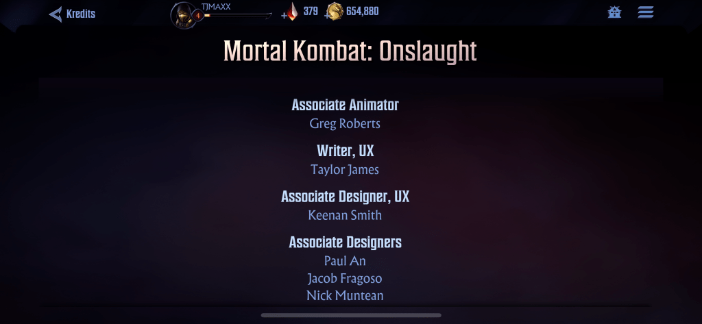 As the UX Writer for Mortal Kombat: Onslaught, I wrote everything from tutorials to character descriptions to item descriptions and inbox messages, side-story summaries, online player guides, push notifications, and marketing materials. I copy edited the narrative scripts and wrote the script for Beyond Redemption, a DLC event featuring the character Ashrah. Additionally, I crafted a style guide to help make all text throughout the game as consistent, on-brand, and grammatically correct as possible.